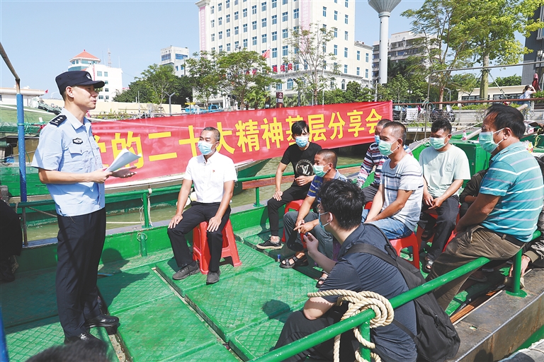 图5 党的二十大代表、省公安厅海岸警察总队第一支队红岛海岸派出所所长刘智宣讲二十大精神。(资料图)
