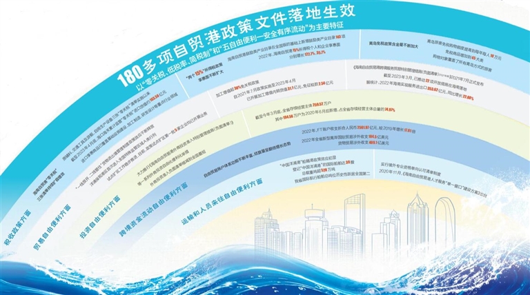 《总体方案》发布以来,在中央部委的大力支持和全省上下的不懈努力下,推进全面深化改革开放和自贸港建设的180多项政策文件落地实施,以“零关税、低税率、简税制”和“五自由便利一安全有序流动”为主要特征的自贸港政策制度体系逐步构建,政策红利加速释放,成效初步显现。