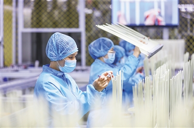 图6海南维力医疗科技开发有限公司工人在加工产品。本报记者 李天平 摄