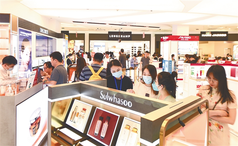 图3游客在中免集团海口日月广场免税店选购商品。新华社发