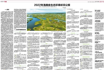 根据《中华人民共和国环境保护法》规定,现发布2022年海南省生态环境状况公报。