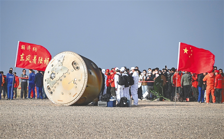6时33分,神舟十五号载人飞船返回舱在巴丹吉林沙漠腹地的东风着陆场平安着陆,神舟十五号载人飞行任务取得圆满成功。