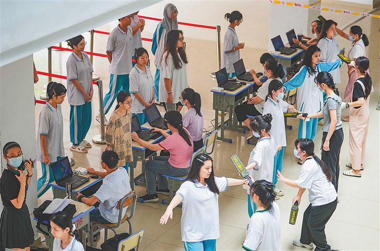 今年我省高考继续严密防范和打击手机等高科技作弊。严格落实手机不带入考点要求,在考点入口设置手机集中管理区域;强化入场安全检查,考点全部按标准配备了智能安检门,实施两道人工安检加一道智能门安检的措施,对安检报警的人员多次复检直至消除隐患;考点全面安装无线电信号(含5G)屏蔽设备,确保手机等高科技通信设备带不进、藏不住、用不了、传不出。