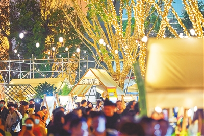 新消费场景也来自传统商业体的自我革新——日月广场、阳光城系商圈、上邦百汇城、海口国际免税城等新老商业综合体纷纷走进“夜色”,通过活动、市集等方式,精心营造一个个时尚、潮流的夜间休闲空间,推动商业消费更加个性化、多层次、品质化。