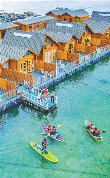 在陵水新村镇疍家渔排,住海上民宿,体验疍家生活,让各地游客慕名而来。这家利用养殖渔排升级改造而成的民宿,不仅是陵水的“网红打卡地”,也是新村港渔民转产转业的鲜活范例。