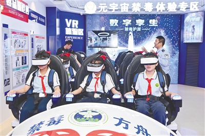 作为实施禁毒“护苗”行动的重要举措,焕然一新的海南省禁毒教育基地科技味浓,设置禁毒科普机器人,实时回答参观者提出的毒品相关的知识,组织禁毒知识问答竞赛进一步调动参观者的参与积极性,并融入物联网、大数据等技术打造了元宇宙禁毒体验专区,通过“禁毒方舟”“吸毒后的你”“AR吸毒生命摧残”等体验,让参观者更直观地了解毒品对人体的危害。