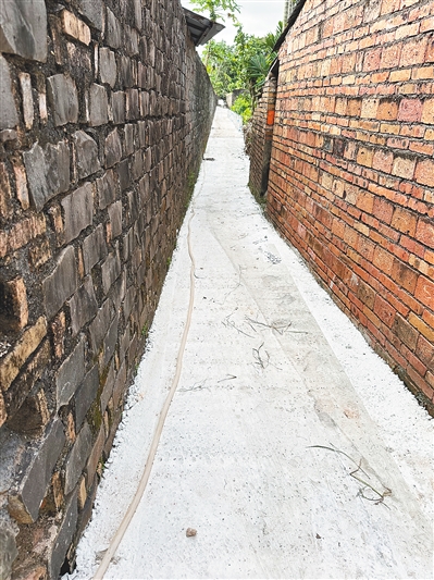 然而,作为一条老土路,小巷年久失修,不仅日常行走不便,雨水常年冲刷路基更是导致道路坑洼不平,路面更是积水湿滑,还常有蛇出没。这不仅给糖厂小区居民群众的日常生活和出行造成诸多的不便,更是给小区的老年人和小孩带来很大的安全隐患。“以前雨水还把路冲塌过,冲出了两个大坑,有段时间都不能通行,生活特别不方便。”黄昌友说。