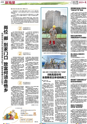 海垦集团结合海南自由贸易港建设和推动海南高质量发展实际,积极融入属地产业发展体系,整合用好产业资金,优化打造“一场一品”,补齐农产品深加工短板,持续增加垦区职工收入。