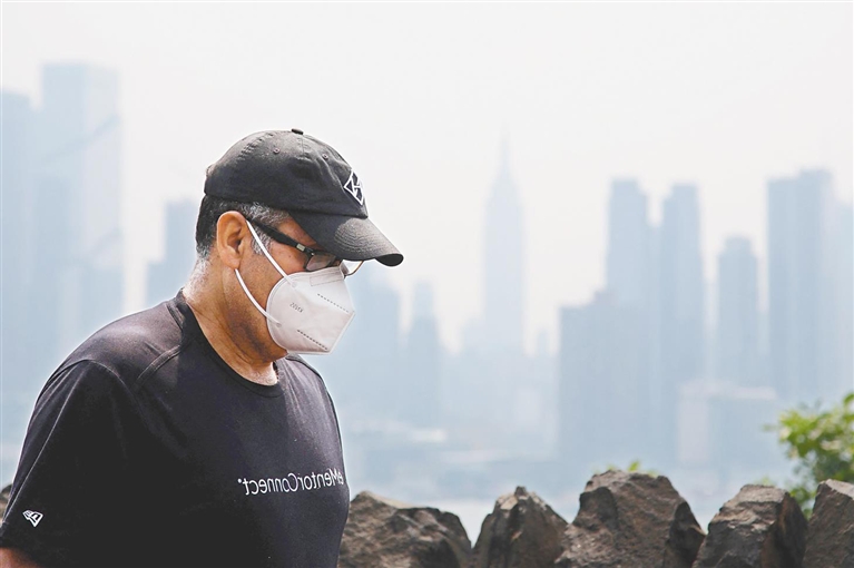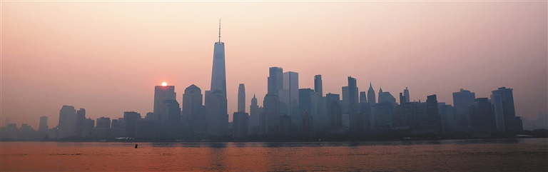 7日,纽约市标志性的天际线在烟雾笼罩下已难以看清,海滩等户外活动场所关闭,中央公园动物园也因动物需留在室内而提前关门。