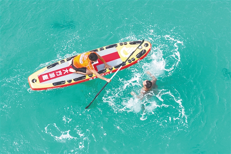 针对夏季各类溺水事件易发的实际,红沙海岸派出所还结合大东海开放型景区岸线长、海况复杂、游客多的特点,组织民警投入无人电动救生船等设备,发挥新装备在救援一线工作中的作用。同时通过成立“护岸小分队”“岸线巡查队”,以空中无人机巡查、徒步巡逻、沙滩车巡防、海上执法艇巡控和设立固定、流动执勤岗点等海陆空立体防控方式,对群众、游客聚集的海域和沙滩进行重点防控,确保群众生命财产安全。