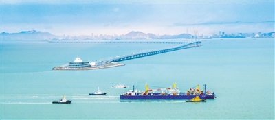 最终接头的对接就像“海底穿针”,误差要控制在“毫米级”。为了实现这一高难度目标,建设者们历经2年技术论证、1年联合设计,在世界范围内首创了沉管整体预制水下推出式最终接头新工艺。