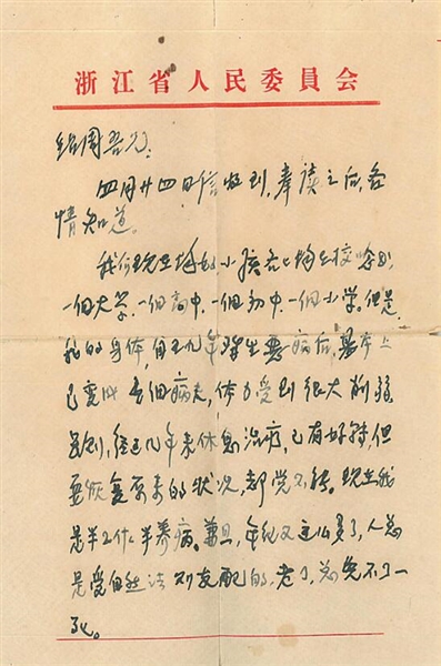 在回信的开头,冯白驹称呼丁绍周为“吾兄”,并详细介绍了自己孩子当时的状况。接着,冯白驹告诉丁绍周,自己的身体在1959年生病后“体力受到很大削弱”,当时已处于半工作半养病的状态,说到这他还宽慰丁绍周,自己年纪大了,总是要“受自然法则支配的”。