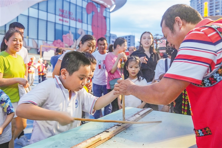 冼夫人文创玩偶、椰雕画DIY、琼剧快闪……在海口骑楼老街等传统特色商业街区,各类非遗展演体验活动层出不穷,古街巷的文化底蕴和非遗技艺的精彩呈现相得益彰。非遗与旅游深度融合,让历史文化街区和特色景区成为年轻人的时尚打卡地。