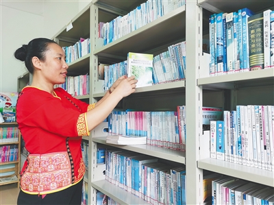 6月9日上午,在白沙黎族自治县青松乡文化站,“80后”王柳娟正将一本本借阅归还的书归档,然后放回书架。期间,她通过电话与村干部沟通在校园周边开展“护苗”行动相关事宜。