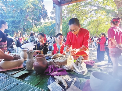 今年上半年,青松乡拥处村非遗工坊建成,王柳娟多次带着学徒们去拥处村开展交流活动,吸引本地村民和外来游客体验黎族泥片制陶,传播非遗文化。