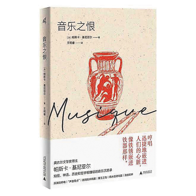 《音乐之恨》似乎就是我所提到的那匹布。它是法国著名作家帕斯卡·基尼亚尔的散文作品集,一部知觉、神话、历史和哲学相缠结的音乐沉思录。它论述了听觉的本质,作者从古希腊、古罗马神话开始追溯,音乐何以成为痛苦和死亡的起源。作者解读了音乐与现代文明的关系,提出了对音乐的反思:音乐在何种程度上会变成痛苦?他试图探究音乐与恐惧、音乐与语言之间的关系,打破了长久以来人们对音乐“高雅”的固有印象,让读者看到那些喜欢最精致又最复杂的音乐,能够一边听音乐流泪的人,也拥有不善的一面。在论述中,作者对音乐的“仇恨”似乎合情合理,而人类与音乐之间的关系则更加值得审视。