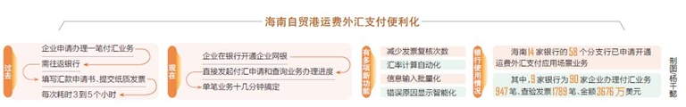 “新模式更改我们付汇申请接入方式,银行直接为我们开通企业网银,我们可以在公司电脑上登录网银,直接发起付汇申请和查询业务办理进度,原本单笔业务要花费1天,现在十几分钟就能搞定,实现多笔境内运费付汇业务‘秒申请’,帮助企业聚焦主业经营。”海口鼎方实业有限公司财务负责人告诉海南日报记者。