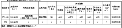 该宗地概况及规划指标等情况详见下表:
