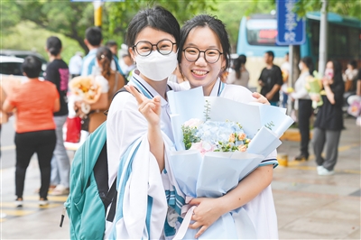6月10日,2023年海南普通高考顺利结束。考场外,不少家长给考生准备了鲜花、贺卡等礼物,祝福他们即将开启下一段新旅程。
