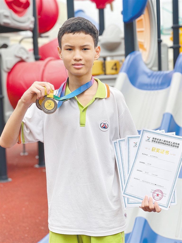 “他拥有异于常人的运动天赋。”琼海市特殊教育学校校长王钊告诉海南日报记者。体育课上,每次老师带领学生们跑步,张宇博总是遥遥领先。经过学校推荐,张宇博成为琼海市残疾人体育代表团成员。