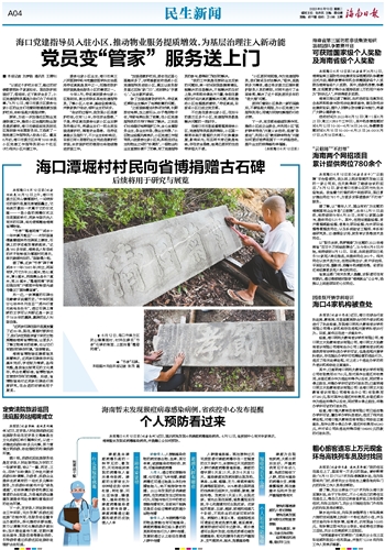 海口潭堀村村民向省博捐赠古石碑