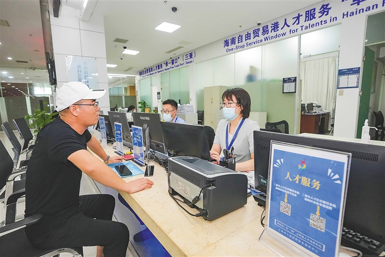近日,在三亚市政务服务中心办事大厅,工作人员为引进人才办理相关业务。