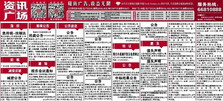 海口东湖嘉丰大酒店的经营权、使用权、发展权于2023年6月9日已依法归海口东湖物业管理有限公司所有。特此公告。