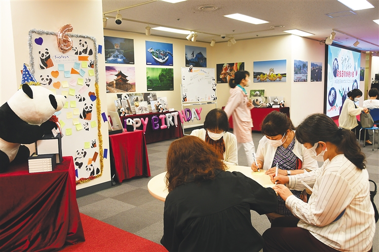 生日会由中国驻东京旅游办事处和东京中国文化中心共同主办,现场布置着“香香”的照片,播放着视频。上野动物园代表大桥直哉、大熊猫摄影家高氏贵博等嘉宾和“香香”的粉丝们聚在一起,遥祝“香香”生日快乐,分享彼此对大熊猫的喜爱。
