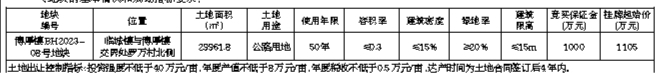 二、本次挂牌出让设有底价,按照出价最高且不低于底价者得的原则确定竞得人。三、 开发建设要求:(一)该宗地拟作为我县高速公路服务区配套设施项目使用,出让地块须统一规划、统一开发,建设须符合《临高县博厚镇BH2017-04、BH2018-01地块控制性详细规划(修编)》要求。(二)竞得人须在签订《挂牌出让成交确认书》后,5个工作日内与临高县交通运输局签订《海南省产业项目发展和用地准入协议》,20个工作日内与临高县自然资源和规划局签订《国有建设用地使用权出让合同》,并严格按照约定内容进行开发建设,否则将承担相关违约责任。(三)竞得人出资比例结构、项目公司股权结构未经土地所在地人民政府批准不得发生变动。(四)竞得人取得土地使用权后,应依法建设使用土地和管理土地,切实履行《国有建设用地使用权出让合同》中的权利和义务。四、竞买申请:(一)竞买人资格:1.中华人民共和国境内外的法人、自然人或其他组织(法律另有规定者除外)均可申请参加竞买(注:失信被执行人不得参加本次竞买),申请人应单独申请,不接受联合体竞买。2.经政府相关部门核实,存在下列情形之一的,申请人及其控股股东禁止参加竞买:(1)存在伪造公文骗取用地和非法倒卖土地等犯罪行为的;(2)存在非法转让土地使用权等违法行为的;(3)因企业原因造成土地闲置一年以上的;(4)拖欠土地出让金的。(二)本次挂牌出让的详细信息、风险提示和具体要求等,见挂牌出让手册及其他相关文件。手册和文件可从海南省建设用地使用权和矿业权网上交易系统(以下简称网上交易系统,网址:http://lr.hainan.gov.cn:9002)查看和打印。(三)有意向的竞买人可登录网上交易系统提交竞买申请,按要求上传竞买申请文件。本次交易不接受电话、邮寄、书面、口头等其他形式的申请。竞买申请时间:2023年6月14日08:30至2023年7月14日17:00(以网上交易系统服务器时间为准,下同)。(四)竞买人在网上交易系统提交竞买申请时,须按照挂牌出让手册的有关规定足额缴存竞买保证金或使用银行保函方式提供竞买保证金。竞买保证金到账截止时间:2023年7月14日17:00。(五)竞买人的竞买申请文件审核通过,且竞买保证金已按要求交纳的,网上交易系统自动发放《竞买资格确认书》,确认其获得竞买资格。竞买资格审核时间:2023年7月4日08:30至2023年7月14日17:30。五、挂牌报价时间及网址: (一)挂牌报价时间为:2023年7月4日08:30至2023年7月17日10:00。(二)挂牌网址:网上交易系统(http://lr.hainan.gov.cn:9002/)。(三)网上挂牌报价时间截止时,无竞买人报价,挂牌活动自动结束;有竞买人报价,网上交易系统限时5分钟在线询问,有竞买人在此规定时限内表示愿意参与网上限时竞价的,系统自动进入网上限时竞价程序,以竞价方式确定竞得人。六、该地块安置补助费已落实到位,地上附着物已清表,土地权利清晰,无法律经济纠纷;不存在土壤污染,符合土壤环境质量要求;宗地已基本完成土地平整,地块周边可以满足施工建设所需的水、电供应,相关设备、机械可以进场施工,具备动工开发必需的条件。七、本次挂牌出让事项如有变更,届时以变更公告为准。本公告未尽事宜详见《临高县国有建设用地使用权挂牌出让手册》以及网上交易系统提供的相关文件,其所载内容为本公告的组成部分。八、咨询方式: 联系方式:王先生 13907558791;查询网址:http://zw.hainan.gov.cn/ggzy/、http://lr.hainan.gov.cn、http://lr.hainan.gov.cn:9002/