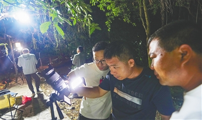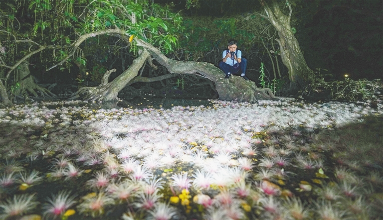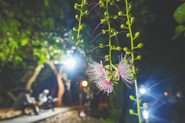 近期,在儋州市中和镇七里村,前来夜赏玉蕊花的游客和摄影师络绎不绝。