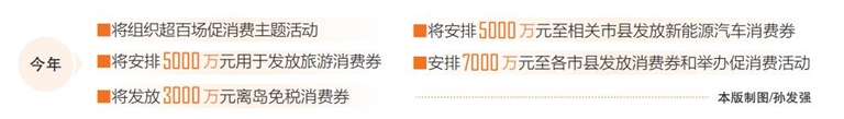 一是举办促消费活动。我省将举办2023第四届海南旅游美食购物嘉年华1+N系列活动,组织百场以上促消费主题活动。海口将举办消费提振系列活动,三亚将举办“乐享盛惠”三亚消费年活动;商超、家电等企业将陆续举办各类优惠活动。为方便群众享受优惠,还将在云闪付等平台设置线上消费专区,整合政府、企业、银行、平台、商户等促消费资源,发放相关消费券。