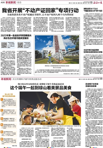 端午节期间,琼山区还将举办丰富多彩的文旅活动。琼山区旅文局局长林先锋介绍,22日至24日期间,琼山区将在琼台福地举办“端午粽情一夏”端午传统文化体验、在省博物馆举办“多彩端午 乐趣民俗”民俗体验和趣味竞技、在日月广场举办多巴胺运动嘉年华PR活动、在星州夜市举办端午节游园荟、在福地夜巷举办主题为“粽”情古巷 福佑端午—游千年福地 品华夏好粽的端午节主题互动体验。另外,cdf日月免税店推出“放‘粽’端午”、日月广场惊喜1元团等一系列优惠促销活动,诚邀市民游客共度精彩假期。