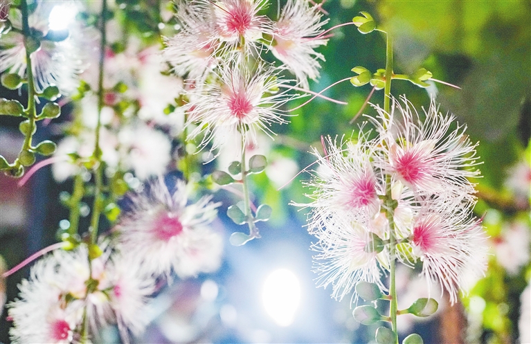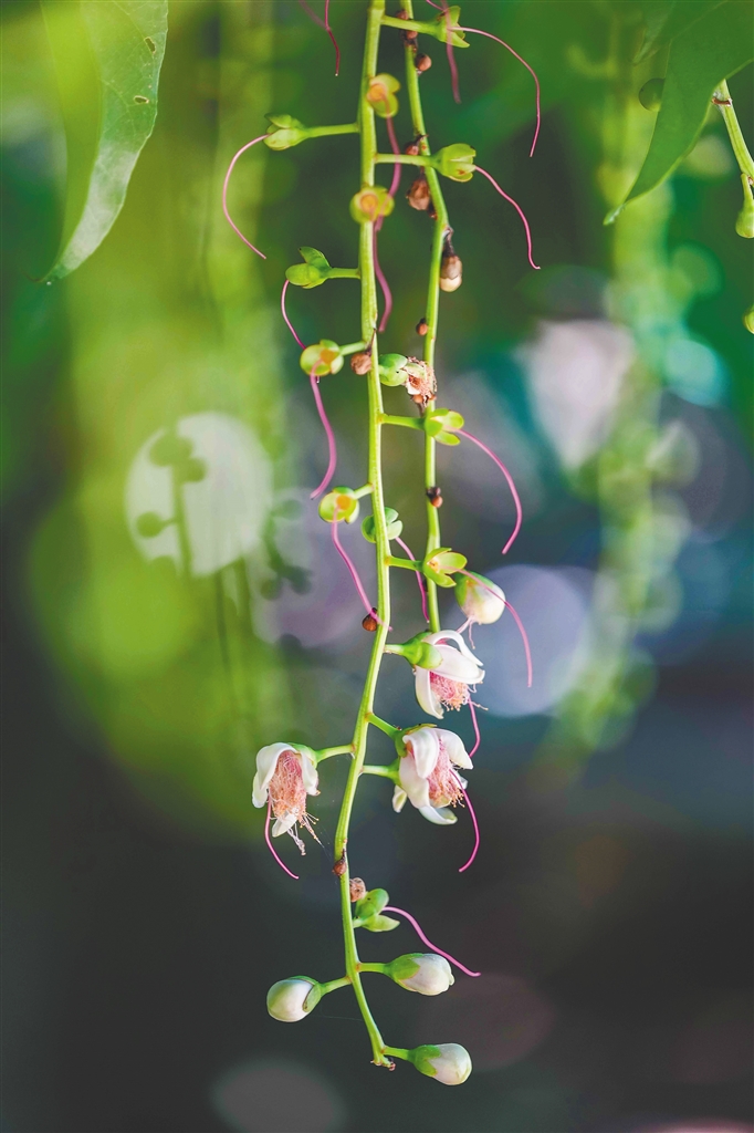 要想一睹玉蕊花盛开真容,人们得耐心等到夜幕降临。玉蕊有个习惯,白天闭合,“沉睡”在枝头;晚上,渐次开放,静悄悄吐露芬芳。“月下美人”或“含羞少女”的别称不胫而走。