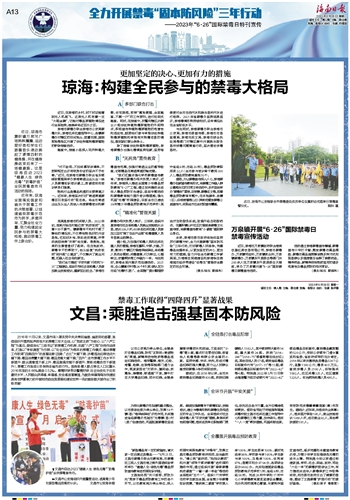 | 海南日报 全力开展禁毒“固本防风险”三年行动——2023年“6·26”国际禁毒日特刊宣传 013 2023-06-261 2023年06月26日 星期一 |