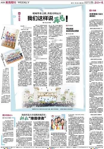 “希望我们一起汲取‘九万里风鹏正举’的力量,历练‘也无风雨也无晴’的豁然,在新的理想之地开启人生新的旅程。”海南华侨中学高三(8)班学生黄兹立在学校毕业典礼上与同学们共勉。