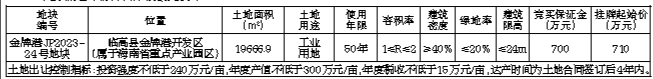 二、本次挂牌出让设有底价,按照出价最高且不低于底价者得的原则确定竞得人。三、 开发建设要求:(一)该宗地拟作为装配式产业项目使用,出让地块须统一规划、统一开发,建设须符合《临高金牌港经济开发区控制性详细规划》要求,生产配套满足规划要求,厂房风貌满足规划要求。(二)竞得人须在签订《挂牌出让成交确认书》后,5个工作日内与临高县工业和信息化服务中心签订《海南省产业项目发展和用地准入协议》,20个工作日内与临高县自然资源和规划局签订《国有建设用地使用权出让合同》,并严格按照约定内容进行开发建设,否则将承担相关违约责任。(三)竞得人出资比例结构、项目公司股权结构未经土地所在地人民政府批准不得发生变动。(四)竞得人取得土地使用权后,应依法建设使用土地和管理土地,切实履行《国有建设用地使用权出让合同》中的权利和义务。四、竞买申请: (一)竞买人资格:1.中华人民共和国境内外的法人、自然人或其他组织(法律另有规定者除外)均可申请参加竞买(注:失信被执行人不得参加本次竞买),申请人应单独申请,不接受联合体竞买。2.经政府相关部门核实,存在下列情形之一的,申请人及其控股股东禁止参加竞买:(1)存在伪造公文骗取用地和非法倒卖土地等犯罪行为的;(2)存在非法转让土地使用权等违法行为的;(3)因企业原因造成土地闲置一年以上的;(4)拖欠土地出让金的。(二)本次挂牌出让的详细信息、风险提示和具体要求等,见挂牌出让手册及其他相关文件。手册和文件可从海南省建设用地使用权和矿业权网上交易系统(以下简称网上交易系统,网址:http://lr.hainan.gov.cn:9002)查看和打印。(三)有意向的竞买人可登录网上交易系统提交竞买申请,按要求上传竞买申请文件。本次交易不接受电话、邮寄、书面、口头等其他形式的申请。竞买申请时间:2023年6月28日08:30至2023年7月26日17:00(以网上交易系统服务器时间为准,下同)。(四)竞买人在网上交易系统提交竞买申请时,须按照挂牌出让手册的有关规定足额缴存竞买保证金或使用银行保函方式提供竞买保证金。竞买保证金到账截止时间:2023年7月26日17:00。(五)竞买人的竞买申请文件审核通过,且竞买保证金已按要求交纳的,网上交易系统自动发放《竞买资格确认书》,确认其获得竞买资格。竞买资格审核时间:2023年7月18日08:30至2023年7月26日17:30。五、挂牌报价时间及网址: (一)挂牌报价时间为:2023年7月18日08:30至2023年7月28日09:00。(二)挂牌网址:网上交易系统(http://lr.hainan.gov.cn:9002/)。(三)网上挂牌报价时间截止时,无竞买人报价,挂牌活动自动结束;有竞买人报价,网上交易系统限时5分钟在线询问,有竞买人在此规定时限内表示愿意参与网上限时竞价的,系统自动进入网上限时竞价程序,以竞价方式确定竞得人。六、该地块安置补助费已落实到位,地上附着物已清表,土地权利清晰,无法律经济纠纷;不存在土壤污染,符合土壤环境质量要求;宗地已基本完成土地平整,地块周边可以满足施工建设所需的水、电供应,相关设备、机械可以进场施工,具备动工开发必需的条件。七、本公告未尽事宜详见《临高县国有建设用地使用权挂牌出让手册》以及网上交易系统提供的相关文件,其所载内容为本公告的组成部分。八、咨询方式: 联系方式:王先生13907558791;查询网址:http://zw.hainan.gov.cn/ggzy/、http://lr.hainan.gov.cn、http://lr.hainan.gov.cn:9002/。