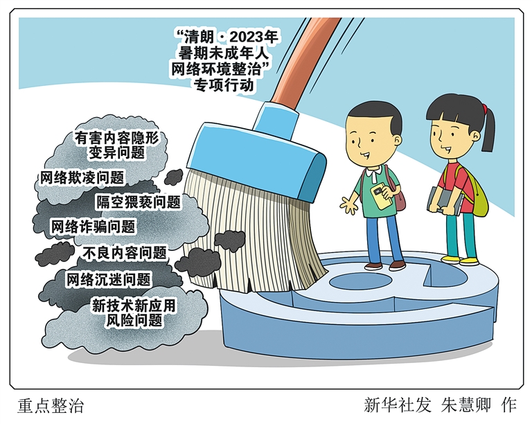 新华社北京6月27日电 (记者王思北)记者27日从中央网信办获悉,为进一步强化未成年人网络保护,营造健康安全网络环境,中央网信办近日印发通知,开展为期2个月的“清朗·2023年暑期未成年人网络环境整治”专项行动,重点整治7方面网上涉未成年人突出问题。
