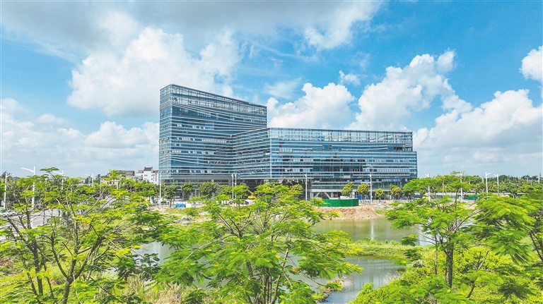 6月28日,位于海口江东新区的江东玖龙总部项目基本完成玻璃幕墙安装,展露新貌。