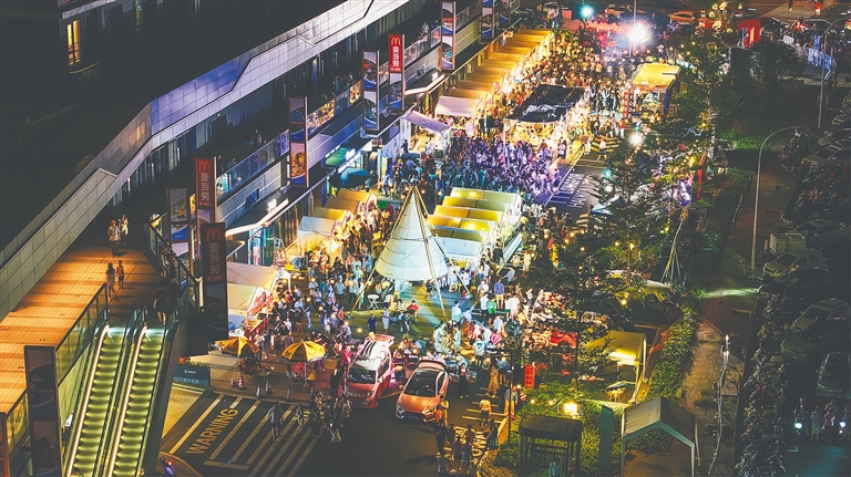 “海南正在加快推进国际旅游消费中心建设,要让更多生活方式成为消费业态的支撑点。”海口市旅文局相关负责人表示,通过市集活动打造出独特文化定义和不同生活方式,将进一步满足都市多元化的消费需求。新消费场景也来自传统商业体的自我革新——不仅是龙湖光年,日月广场、阳光城、海口国际免税城等海口新老商业综合体也纷纷引入新“夜”态。