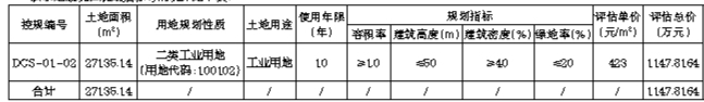 (一)挂牌出让宗地基本情况:本次挂牌出让宗地位于三亚市崖州区大出水村矿区周边配套用地控规DCS-01-02地块内,面积27135.14平方米,用地四至及界址坐标详见地块勘测定界图。经核查《三亚市总体规划(空间类2015-2030)》(省政府同意入库版),该宗地用地规划性质为其他独立建设用地。同时,经核查《关于三亚市崖州区大出水村矿区周边配套用地控规分图则的批复》(三府函〔2022〕703号),该宗地用地规划性质为二类工业用地(用地代码:100102),对应土地用途为工业用地。