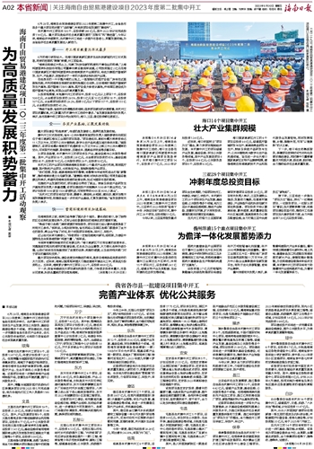 第002版:本省新闻关注海南自由贸易港建设项目2023年度第二批集中开工