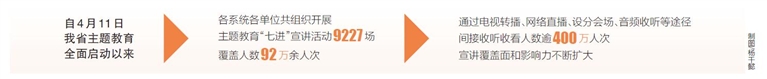 海南日报记者从会上获悉,自4月11日我省主题教育全面启动以来,各系统各单位共组织开展学习贯彻习近平新时代中国特色社会主义思想主题教育“七进”宣讲活动9227场,覆盖人数92万余人次,通过电视转播、网络直播、设分会场、音频收听等途径间接收听收看人数逾400万人次,宣讲覆盖面和影响力不断扩大。