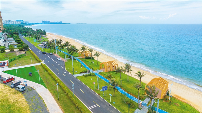 同时,海南环岛旅游公路还设计了总长67公里的慢行系统,其中骑行系统46公里,步行系统21公里;通车后还将通过连接线与环岛高铁、高速、国道有机衔接,构建起海南“快进慢游”交通体系。