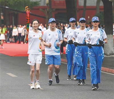 当日,成都第31届世界大学生夏季运动会火炬传递成都站起跑仪式活动在四川大学校园内举行。新华社记者 王曦 摄