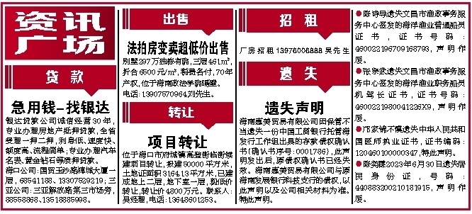 海口公司:国贸玉沙路椰城大厦一层,68541188、13307529219;三亚公司:三亚解放路第三市场旁,88558868、13518885998。