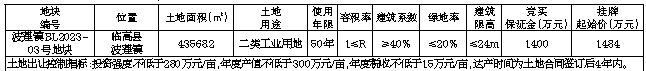 二、本次挂牌出让设有底价,按照出价最高且不低于底价者得的原则确定竞得人。三、开发建设要求:(一)该宗地拟作为橡胶和塑料制品业产业使用,出让地块须统一规划、统一开发,建设须符合《临高县波莲循环经济试验基地控制性详细规划》要求,生产配套满足规划要求,厂房风貌满足规划要求。(二)竞得人须在签订《挂牌出让成交确认书》后,5个工作日内与临高县工业和信息化服务中心签订《海南省产业项目发展和用地准入协议》,20个工作日内与临高县自然资源和规划局签订《国有建设用地使用权出让合同》,并严格按照约定内容进行开发建设,否则将承担相关违约责任。(三)竞得人出资比例结构、项目公司股权结构未经土地所在地人民政府批准不得发生变动。(四)竞得人取得土地使用权后,应依法建设使用土地和管理土地,切实履行《国有建设用地使用权出让合同》中的权利和义务。四、竞买申请: (一)竞买人资格:1.中华人民共和国境内外的法人、自然人或其他组织(法律另有规定者除外)均可申请参加竞买(注:失信被执行人不得参加本次竞买),申请人应单独申请,不接受联合体竞买。2.经政府相关部门核实,存在下列情形之一的,申请人及其控股股东禁止参加竞买:(1)存在伪造公文骗取用地和非法倒卖土地等犯罪行为的;(2)存在非法转让土地使用权等违法行为的;(3)因企业原因造成土地闲置一年以上的;(4)拖欠土地出让金的。(二)本次挂牌出让的详细信息、风险提示和具体要求等,见挂牌出让手册及其他相关文件。手册和文件可从海南省建设用地使用权和矿业权网上交易系统(以下简称网上交易系统,网址:http://lr.hainan.gov.cn:9002)查看和打印。(三)有意向的竞买人可登录网上交易系统提交竞买申请,按要求上传竞买申请文件。本次交易不接受电话、邮寄、书面、口头等其他形式的申请。竞买申请时间:2023年7月3日08:30至2023年8月1日17:00(以网上交易系统服务器时间为准,下同)。(四)竞买人在网上交易系统提交竞买申请时,须按照挂牌出让手册的有关规定足额缴存竞买保证金或使用银行保函方式提供竞买保证金。竞买保证金到账截止时间:2023年8月1日17:00。(五)竞买人的竞买申请文件审核通过,且竞买保证金已按要求交纳的,网上交易系统自动发放《竞买资格确认书》,确认其获得竞买资格。竞买资格审核时间:2023年7月24日08:30至2023年8月1日17:30。五、挂牌报价时间及网址: (一)挂牌报价时间为:2023年7月24日08:30至2023年8月3日09:30。(二)挂牌网址:网上交易系统(http://lr.hainan.gov.cn:9002/)。(三)网上挂牌报价时间截止时,无竞买人报价,挂牌活动自动结束;有竞买人报价,网上交易系统限时5分钟在线询问,有竞买人在此规定时限内表示愿意参与网上限时竞价的,系统自动进入网上限时竞价程序,以竞价方式确定竞得人。六、该地块安置补助费已落实到位,地上附着物已清表,土地权利清晰,无法律经济纠纷;不存在土壤污染,符合土壤环境质量要求;宗地已基本完成土地平整,地块周边可以满足施工建设所需的水、电供应,相关设备、机械可以进场施工,具备动工开发必需的条件。七、本公告未尽事宜详见《临高县国有建设用地使用权挂牌出让手册》以及网上交易系统提供的相关文件,其所载内容为本公告的组成部分。八、咨询方式: 联系方式:熊先生 17763898105;查询网址:http://zw.hainan.gov.cn/ggzy/、http://lr.hainan.gov.cn、http://lr.hainan.gov.cn:9002/。