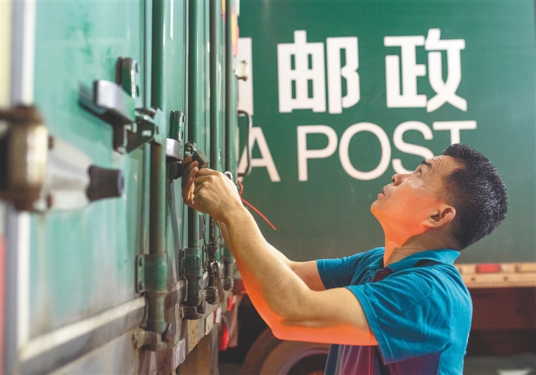 在广州邮件处理中心装载了寄往海南的邮件和快递后,次日凌晨2时,邮车再次出发,于下午3时前后抵达海口。