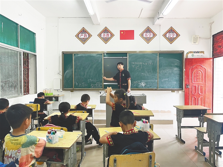 除了织锦,钟诚还着重培养孩子们的音乐特长。“山里的孩子有着天赋异禀的歌喉,这种纯洁、淳朴、原生态的声音,很有感染力。”钟诚介绍,2023年,该校学生参加昌江第十二届青少年儿童艺术展演声乐专场,张宝月、吉春梅、韩佳欣、韩佳琪(组合)获小学组一等奖。
