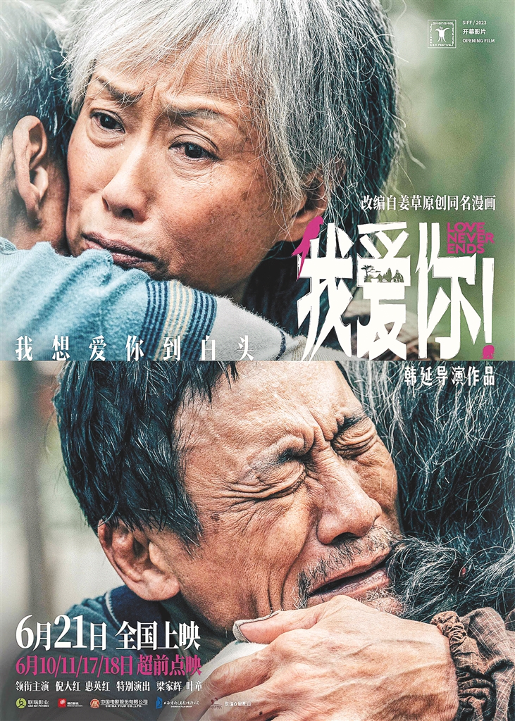 《我爱你!》不用再多看一遍,都能让人感受到爱的力量是伟大的。电影的英文名叫作love never ends,用中文来讲就是爱无止境。它跨越阶层,超越时空,跨越年龄,将两个孤独或者受伤的灵魂连接在一起,从此风雨兼程,不离不弃。经历了大半生的阅历和磨炼,爱情几乎成为中老年的奢侈品,《我爱你!》一反世俗成见,不仅将认同的目光投向了老年人的情感世界,而且给予了高度的赞许。故事中三对老人的恋情都带有传统农耕时代的理想色彩。