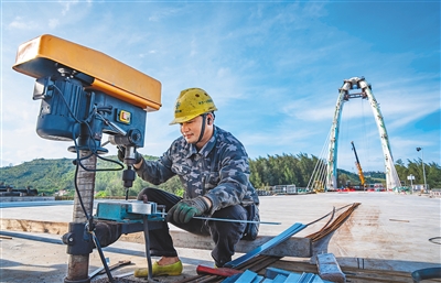 日前,位于万宁的龙滚河大桥项目现场,工人正加紧开展收尾施工。该桥是海南环岛旅游公路万宁段的控制性工程,也是我省首座无背索斜拉桥,大桥桥梁长206.48米,跨越龙滚河入海口。